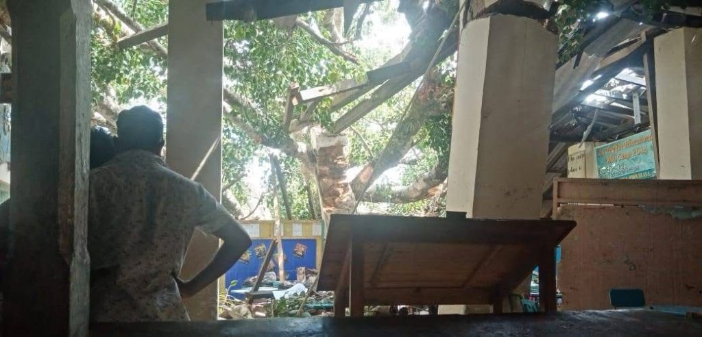 බලංගොඩ පාසල් ගොඩනැගිල්ලක් මතට ගසක් කඩා වැටීමෙන් සිසුවෙකු මිය ගොස් තිබෙනවා..