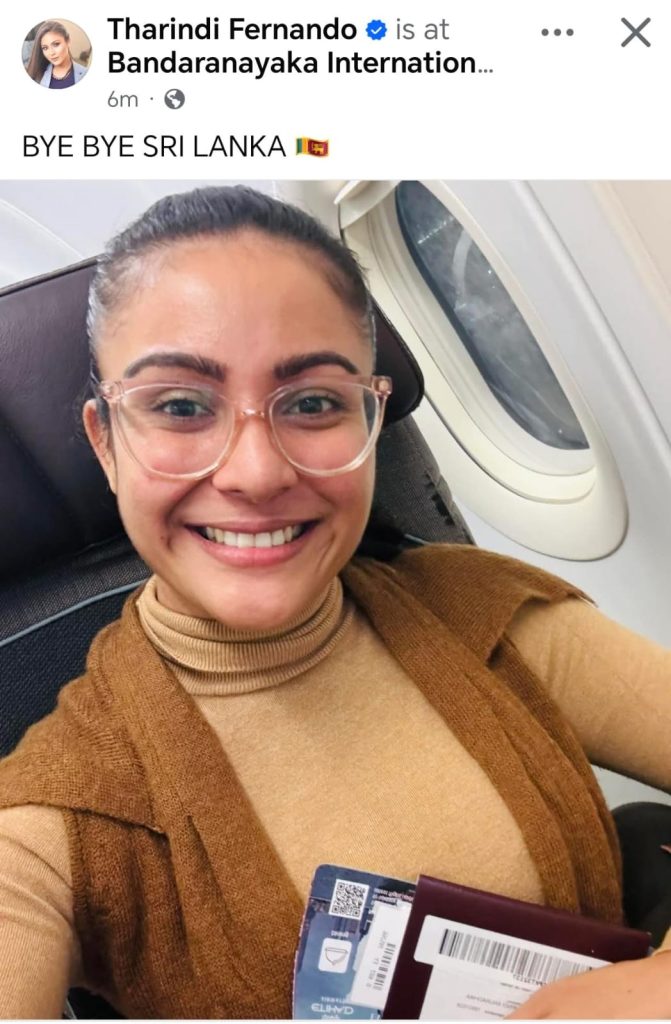 ඔන්න ඉතින් ඒ සිදුවීම වෙලා පැය කිහිපයකට පසු තරින්දි විදෙස් ගත වූ බවට ඇගේ මුහුණුපොතට සටහනක් එක්කරලා තිබුණා..