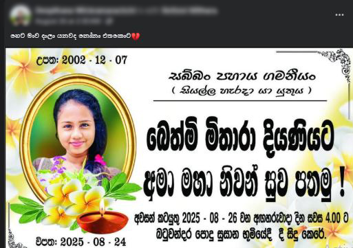 බෙත්මි මිතාරා, ශ්‍රී ජයවර්ධනපුර සරසවියේ කළමනාකරණ අධ්‍යයන හා වාණිජ විද්‍යා පීඨයේ ඉගෙනුම ලැබූ ඇගේ මේ වියෝව ගැන සමාජමාධ්‍යයේ බොහෝදෙනා කතාබහ වුණා..
