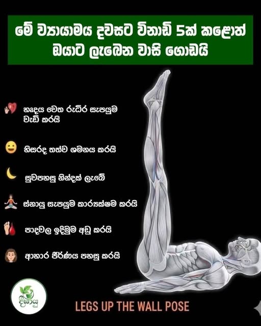 මිනිත්තු 5ක් ඔබේ කකුල් මෙලෙස ඔසවා තබාගෙන සිටීමෙන් ඔබට ලැබෙන ප්‍රතිලාභ බොහෝමයි.